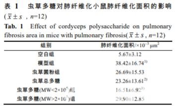2.2 蟲草多糖對小鼠肺組織纖維化的影響