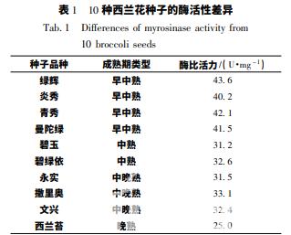 2. 1. 1 不同品種西蘭花種子對黑芥子酶活性的影響