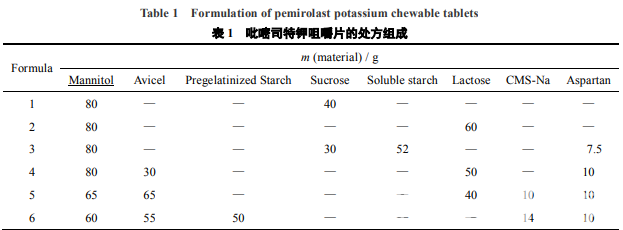 2.1 吡啶司特鉀嚼片的制備