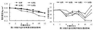 ①提取液的制備:取 10g 去皮果肉,加 1g PVP 于 20mL 0.2mol/L 磷酸緩沖液 (pH=6.4)中,冰浴研磨,4℃冰凍離心機(jī) 12000×g 離心 30min,取 上 清 液 測(cè) 定 PPO、POD 酶活性和丙二醛 (MDA)含量。②PPO 活性的測(cè)定:PPO 活性測(cè)定參照 Galeazzi 等的方法,并加以改進(jìn)。③POD 活性的測(cè)定: POD 活性的測(cè)定按照 Putter 的方法,稍作修改。④ MDA 含量的測(cè)定:MDA 含量的測(cè)定參照 Heath 和 Pacontrolert的方法。