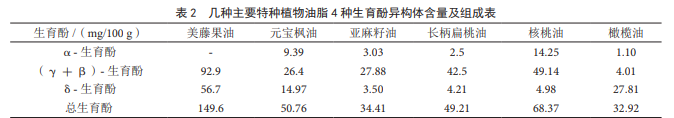 (2)不同提取工藝制取特種植物油脂 4 種生育酚 異構(gòu)體含量及其組成差異明顯,主要由于高溫?zé)崽幚怼?精煉過程會造成 4 種生育酚異構(gòu)體損失。結(jié)合不同特種 植物油脂原料特性及營養(yǎng)物組成的差異,韓本勇等建 議采用適當(dāng)?shù)奶嵊凸に嚰夹g(shù)來最大限度地提高 4 種生育 酚異構(gòu)體含量及 γ- 生育酚和 δ- 生育酚收率。